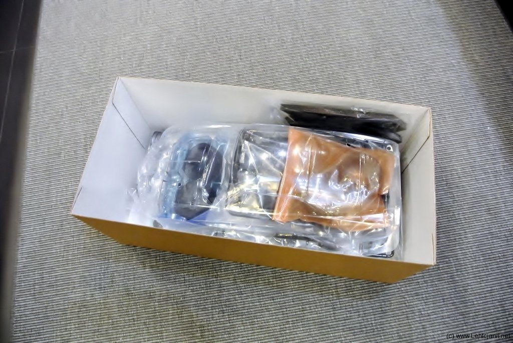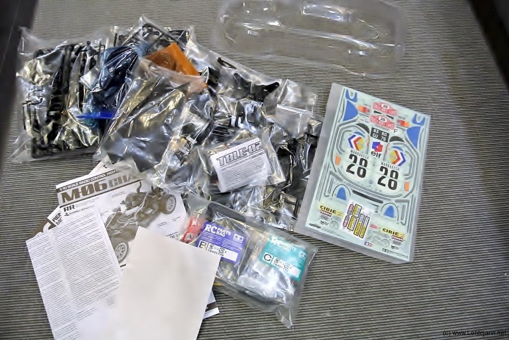 Paketissa on paljon tavaraa! Onhan se radiota ja akkua vaille valmis ajoon, siis jos kasaamista ei huomioida.