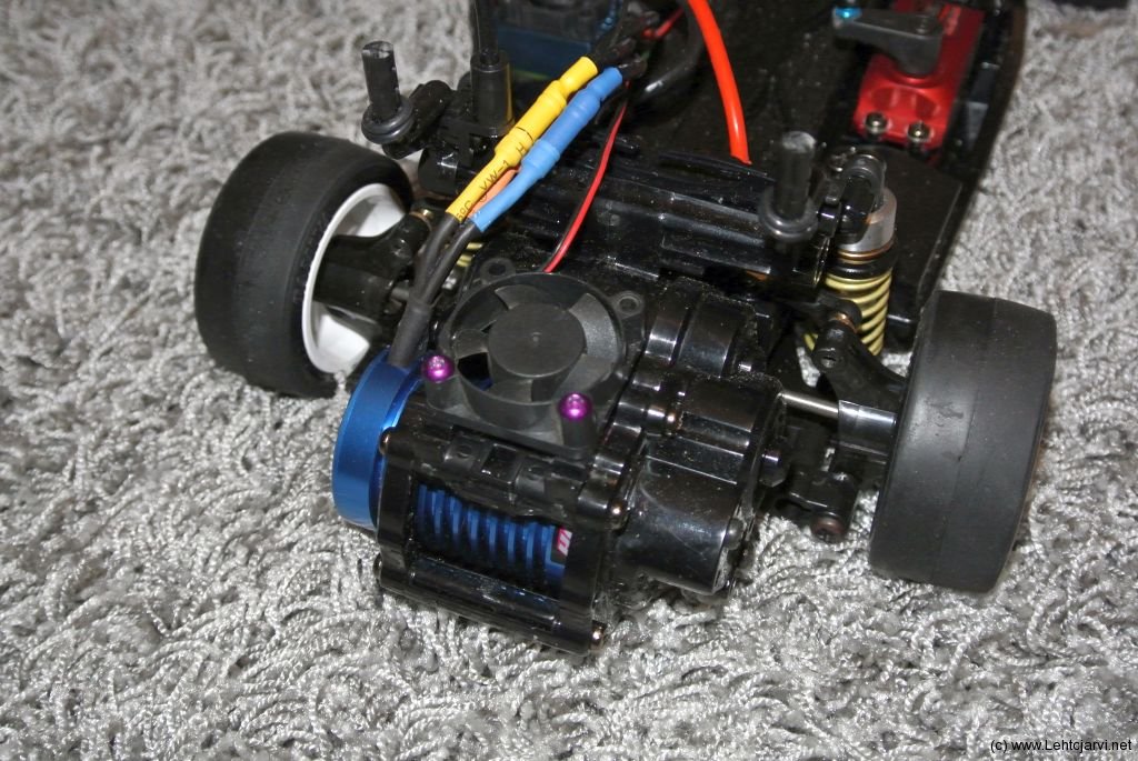 Jotakuinkin kaikki tarvikkeet autosarjan valmiiksi saattamiseen olikin jo omasta takaa, mutta sääntöjen mukainen moottori vielä puuttui. Säännöt antavat kaksi vaihtoehtoa, toista ei ole tainnut saada enää muutamaan vuoteen ja toinen moottori löytyy Hobbywingin valikoimista. Katsaus EuroRC:n nettikauppaan ja siellähän sellainen oli, hinta oli vain mielestäni aivan kohtuuton tavallisesta _sensorittomasta_ moottorista. Vastaavankaltaisia koneita saa euroopasta puolella kuluineen. Päädyin tilaamaan ulkomaan kaupasta, mutta euroopasta, samaisen moottorin combona, eli säätimen kera ja maksoin siitä kuluineen suurinpiirtein saman kuin pelkkä moottori kotimaasta.