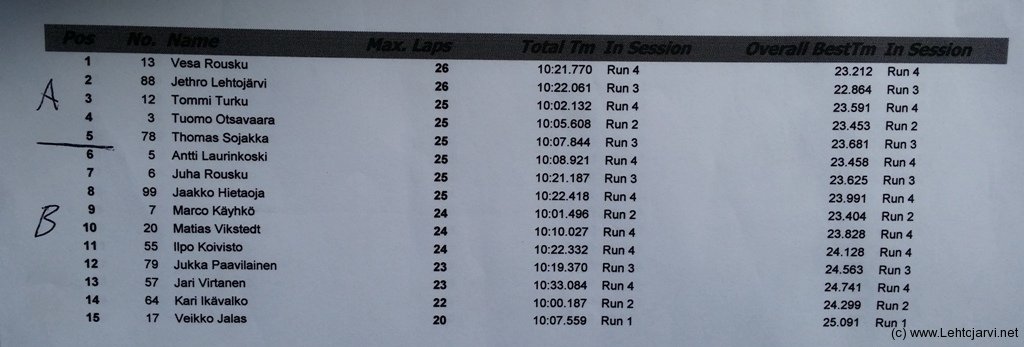 - 5 Jari Valkola PKSRCA 104 45:07.401 A Finaali