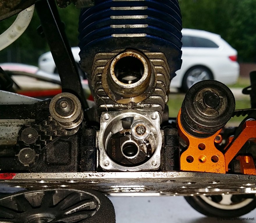 Onnekseni kuitenkin alkoi sataa vettä, se oli minulle ainakin TP-10 luokassa mieluinen noin niinkuin tuloksellisesti. Laitoin autoon äkkiä vesikelin säädöt ja kohti semiä. Lähdin semifinaaliin kuudennesta ruudusta ja olinkin jo muutaman kurvin jälkeen toisena, Antti Silvennoinen kärjessä karkasi alta ja minä turvallisesti kruisailin kakkospaikalla. Normaalisuoritus yltäisi mainiosti finaaliin. Jep! Jos jotain minuun tulee niin normaalisuoritus jäi haaveeksi. En siinä montaa minuuttia ehtinyt ajella kun moottori sanoo sopimuksen irti. Äkkiä mietin, että taas meni veivi, ei kyllä pitänyt oli sen verran vähän ajettu moottori. Myöhempi tutkimus osoitti ajatukseni vääräksi, koneesta oli mennyt kampiakseli poikki! Voi helvata, siihen jäi kisa. No uutta konetta kehiin ja matoa koukkuun seuraavaan kisaan.