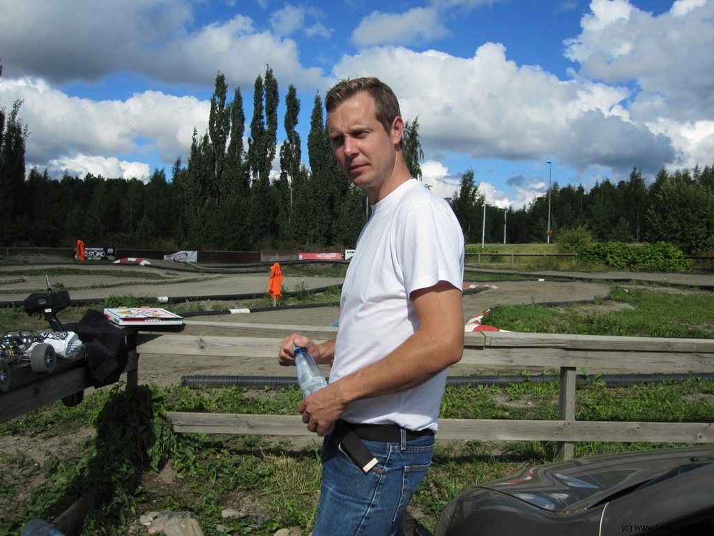 Nyt jännitti, kisan voitto oli vielä auki. En muuttanut autoani mitenkään, joten kaikki oli kiinni kuskista. Alkuhässäköiden jälkeen pahin uhkaaja Ville oli pudonnut kolmanneksi ja Jon ahdisteli kärkipaikkaani. Pääsuoran jälkeisessä mutkassa tuli pieni peräänajo. Jon erittäin herrasmiesmäisesti jäi odottamaan, että pääsin jatkamaan matkaa, tämä kuvastaa erinomaisesti koko päivän rehtisyyttä. Tässä hässäkässä Ville sai meidät kiinni ja Jon putosi kolmospaikalle. Ajettiin useita kierroksia ihan jonossa ja yritettiin kukin välttää virheitä, ajettiin silti ihan limitillä, aivan fantastista kisaamista. Viimeinen kierros lähti ja ajattelin, että nyt pidetään ajolinja tiukkana ja kruisataan voittoon – ja mitä TAKAPYÖRÄNI PUTOAA RADALLE! 😯 Ville ajoi voittoon ja Jon heti perässä kakkosena, oli finaalin kolmas vaikka en täyttä viittä minuuttia saanut ajettua.