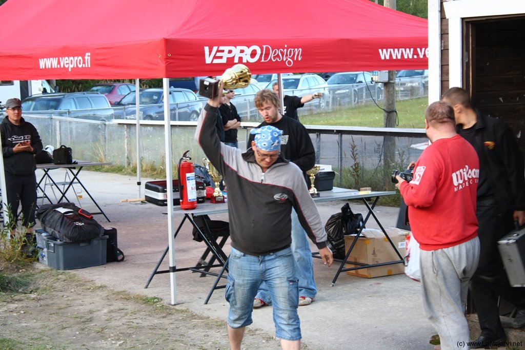 Treenit ajoin vanhoilla renkailla, uudet laitoin alkueriin. Ensimmäisen ja toisen alkuerän otti nimiinsä HyUA:n oma kuljettaja Jani Hovi, ”Hovimestariksikin” joskus mainittu taitava kuljettaja. Itselläni oli ylimääräistä ohjelmaa kahdessa ekassa lähdössä. Auto oli hieman liian vikurantti ajaa, joten alustaa piti hieman säätää. Radan pito lisääntyi jatkuvalla syötöllä, joten kolmanteen alkuerään piti miettiä säätöjä hieman ennakoivin ottein. Käytännössä muutin roll-centeriä molemmissa päissä autoa, sekä kiristin kakkosvaihteen kytkeytymistä. Etupäässä laskin ylälinkin sisäpäästä keskelle, ja takapäässä samainen siirto mutta alimmasta reijästä pykälän ylös. Kolmanteen alkuerään menin keskittyneesti, ja nyt tai ei koskaan asenteella. 14:sta kierroksen tulosta ei oltu vielä saatu puhki, joten se oli tavoite. Auton säädöt osuivat käsittämättömän nappiin. Ajoin 14:sta kierroksen tuloksen, ja vieläpä niin, että kierrosajat olivat kaikki 0,6s sisällä. Kaikki kierrokset olivat 23 sekuntia, ajoin tässä kohtaa kisaa nopeimman läpinkin, joka oli 22,4xx. Tällä otin kiinnityksen nopeimpaan alkueräpaikkaan. Viimeisen alkuerän uhrasin rengastesteille. Täysin uusi ehdokas GT-8 renkaaksi oli ilmestynyt varikkopöydälleni. Tämä tulos hylättiin, luonnollisesti, mutta sain ensi kautta varten arvosta tietoa renkaasta. Rengas vaikutti oikein lupaavalta, koska ajoin silläkin 14 kierroksen tuloksen. Hovilla oli kova näytön paikka ottaa TQ viimeisellä, mutta 14 kierros jäi haaveeksi moottorin sammuttua. Ennuste tosin oli minun kolmannen kierroksen tulosta heikompi. Vikan kisan TQ tuli siis nimiini.